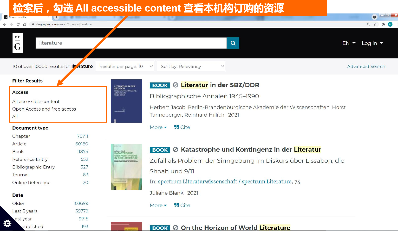 一、在德古意特平台上如何查看本机构订购的资源